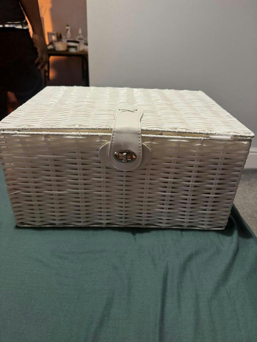 Beautiful hamper! Carefully shipped. Stunning blue ribbon and decoration on the lid. Our friends were over the moon with it. I highly recommend.
